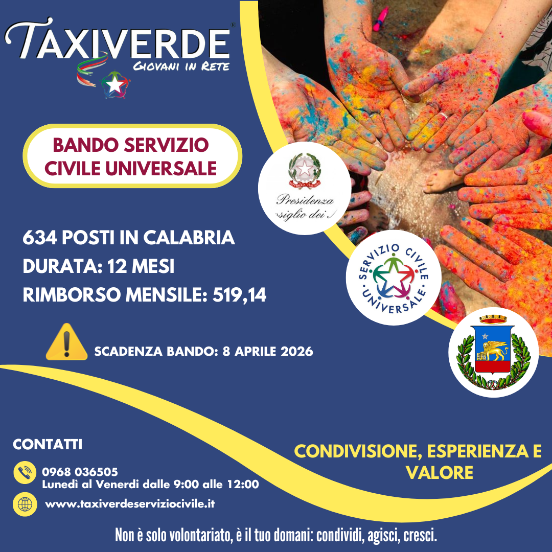 Pubblicato dal Dipartimento per le Politiche Giovanili e il Servizio Civile Universale – Presidenza del Consiglio dei Ministri, il bando che prevede complessivamente 65.964 posti disponibili in Italia e all’estero ed è rivolto ai giovani di età compresa tra i 18 e i 28 anni (28 anni e 364 giorni alla data di presentazione della domanda).
