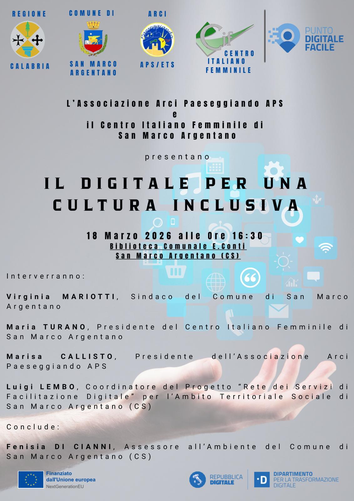 18 Marzo 2026 alle Ore 16:30 Biblioteca Comunale E. Conti San Marco Argentano (CS)